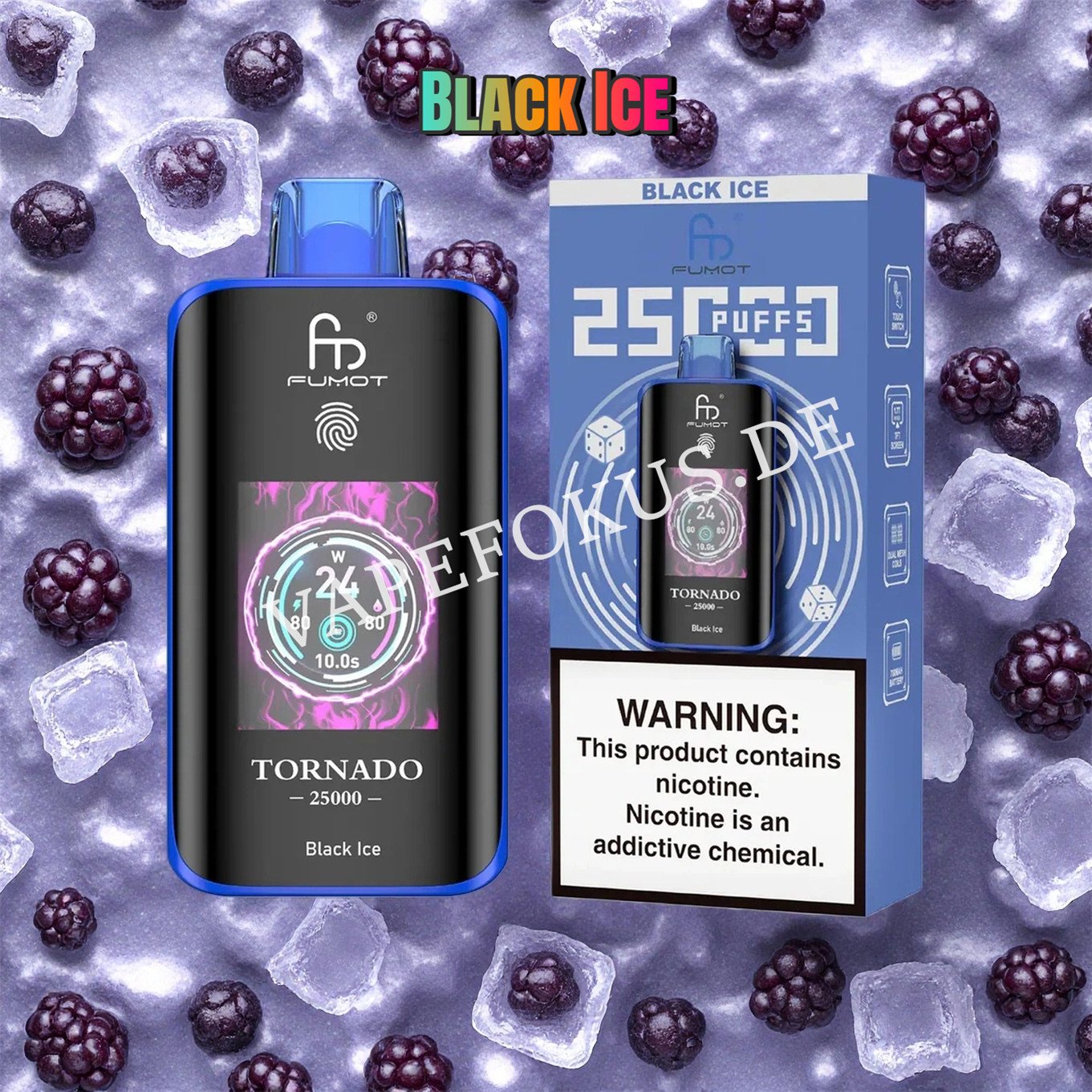 „Black Ice“: Bezeichnet meist Blackberry Ice. Das einzigartige, intensive Fruchtaroma von Brombeeren, kombiniert mit einem eisigen Gefühl, ergibt einen kühlen und geheimnisvollen Geschmack, der nicht nur Fruchtigkeit, sondern auch ein ausgesprochen erfrischendes Erlebnis bietet.