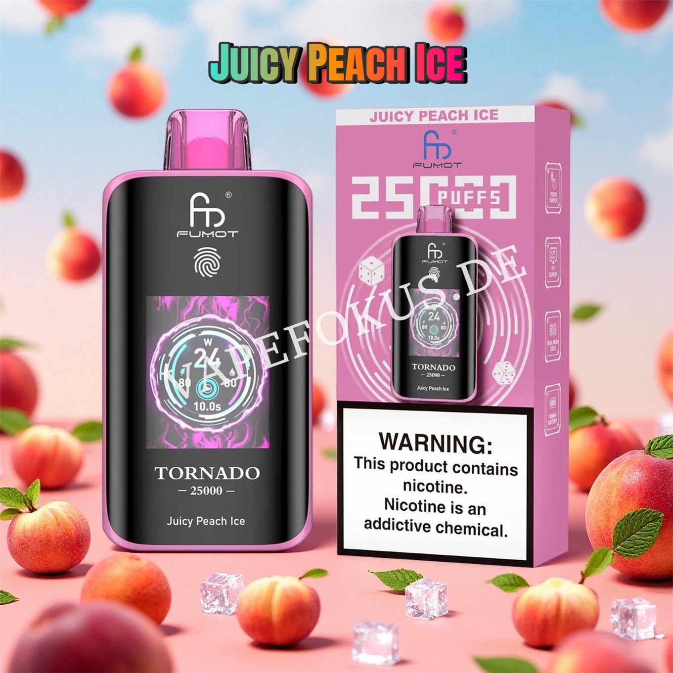 Die RandM Tornado 25000 verfügt über einen intelligenten Touchscreen, drei einstellbare Leistungsstufen, einen Spielmodus und bietet über 25 Geschmacksrichtungen.
