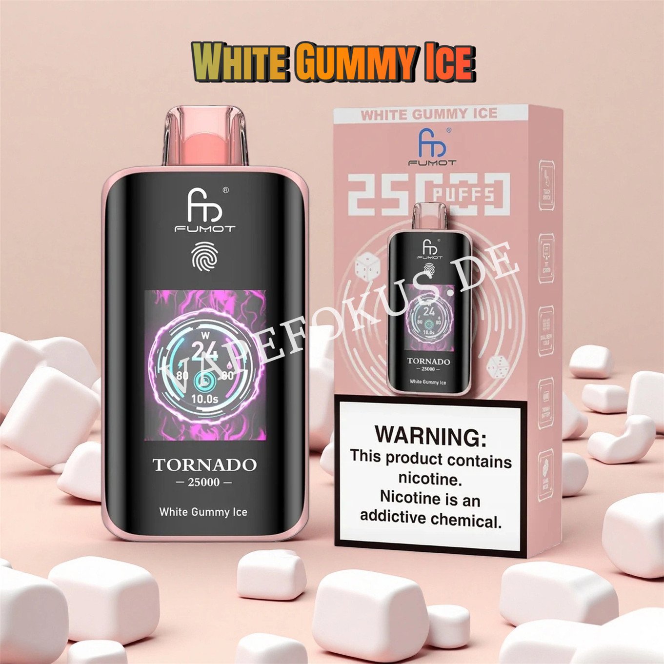 „White Gummy Ice“: Erweckt den Geschmack von weißen Gummibärchen (meist Ananasgeschmack) zum Leben. Einzigartige Süße, eine leichte Säure und ein kühler Abgang sorgen für eine angenehm zähe Textur – perfekt für E-Zigaretten-Nutzer mit einer Vorliebe für Süßes.