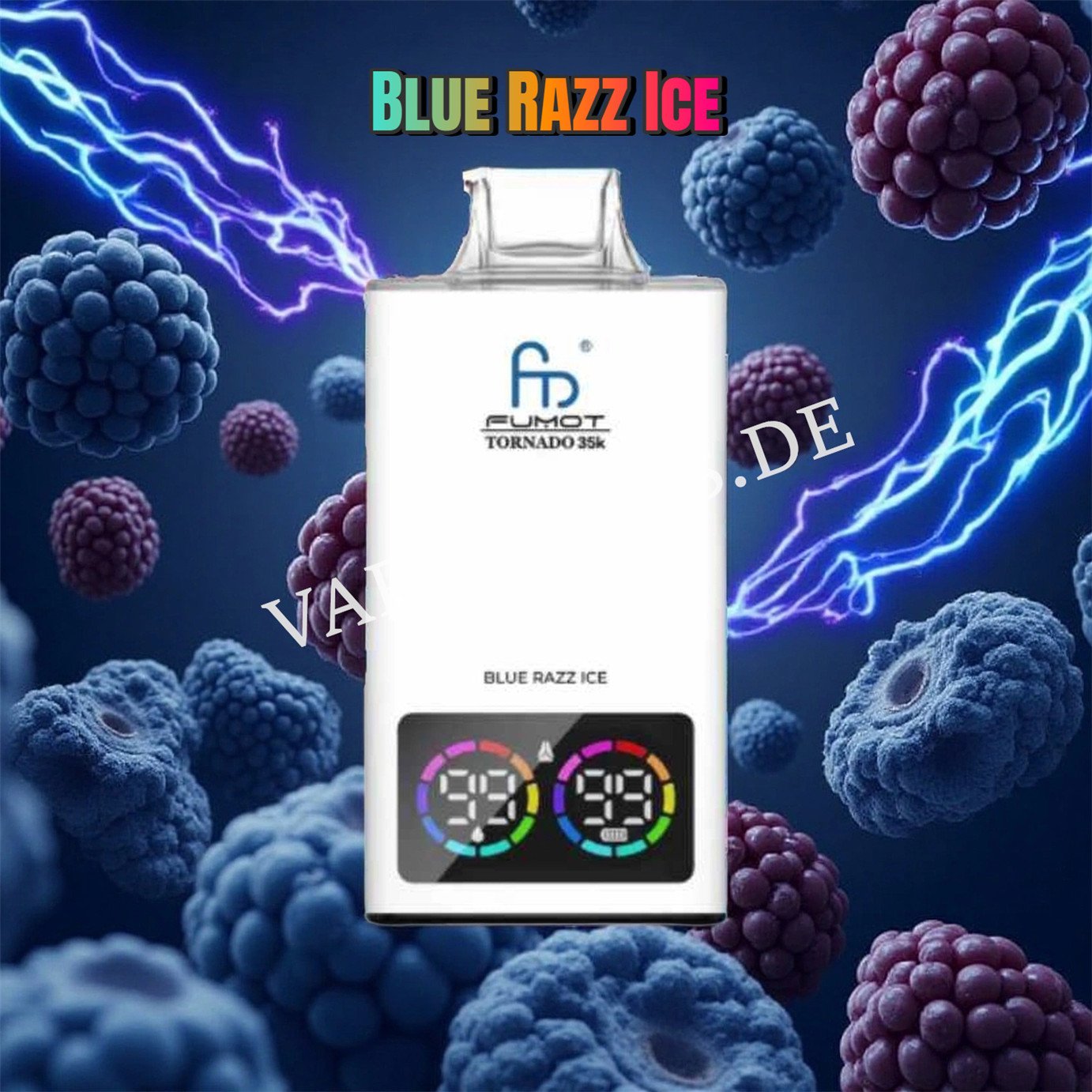 - Effekt: Die RandM Tornado 35000 E-Zigarette leuchtet beim Inhalieren mit RGB-Beleuchtung.